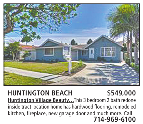 HUNTINGTON BEACH $549,000 Huntington Village Beauty…This 3 bedroom 2 bath redone inside tract location home has hardwood flooring, remodeled kitchen, fireplace, new garage door and much more. Call 714-969-6100