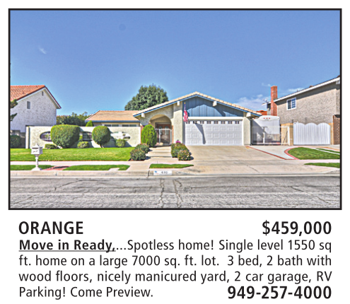Move in Ready,...Spotless home! Single level 1550 sq ft. home on a large 7000 sq. ft. lot. 3 bed, 2 bath with wood fl oors, nicely manicured yard, 2 car garage, RV Parking! Come Preview. 949-257-4000