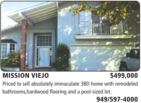 MISSION VIEJO $499,000 Priced to sell absolutely immaculate 3BD home with remodeled bathrooms,hardwood flooring and a pool-sized lot .