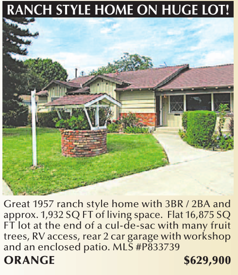 Great 1957 ranch style home with 3BR / 2BA and approx. 1,932 SQ FT of living space. Flat 16,875 SQ FT lot at the end of a cul-de-sac with many fruit trees, RV access, rear 2 car garage with workshop and an enclosed patio. MLS #P833739 ORANGE $629,900