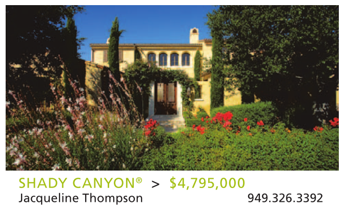 SHADY CANYON ® > $4,795,000 Jacqueline Thompson 949.326.3392