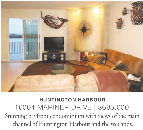 16094 MARINER DRIVE | $685,000 Stunning bayfront condominium with views of the main channel of Huntington Harbour and the wetlands.