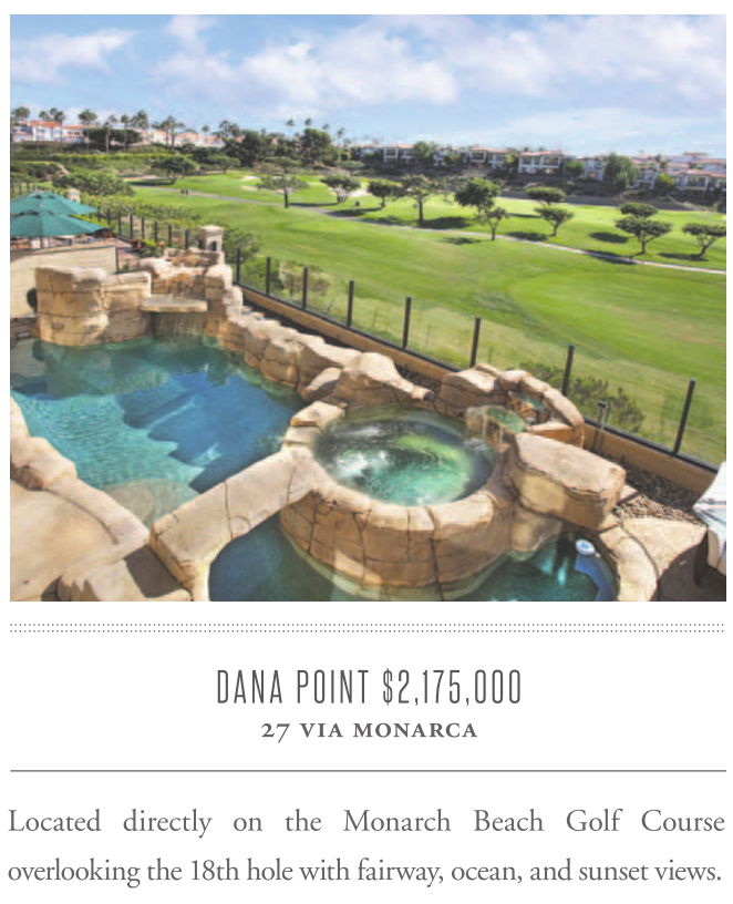 Located directly on the Monarch Beach Golf Course overlooking the 18th hole with fairway, ocean, and sunset views.
