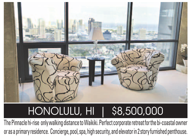 The Pinnacle hi-rise only walking distance to Waikiki. Perfect corporate retreat for the bi-coastal owner or as a primary residence. Concierge, pool, spa, high security, and elevator in 2 story furnished penthouse.