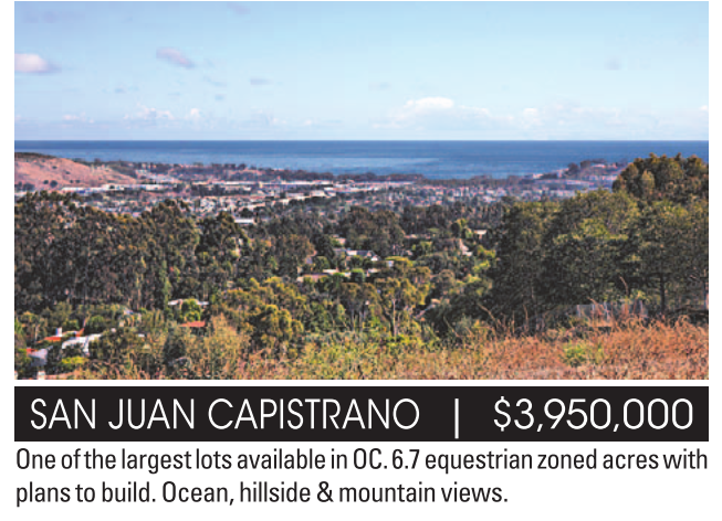 One of the largest lots available in OC. 6.7 equestrian zoned acres with plans to build. Ocean, hillside & mountain views.