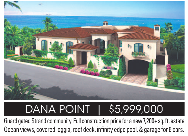 Guard gated Strand community. Full construction price for a new 7,200+ sq. ft. estate Ocean views, covered loggia, roof deck, infinity edge pool, & garage for 6 cars.