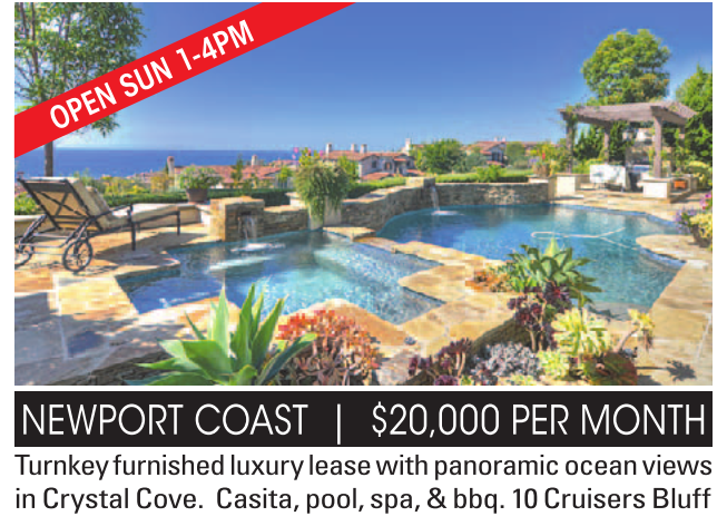 Turnkey furnished luxury lease with panoramic ocean views in Crystal Cove.  Casita, pool, spa, & bbq. 10 Cruisers Bluff