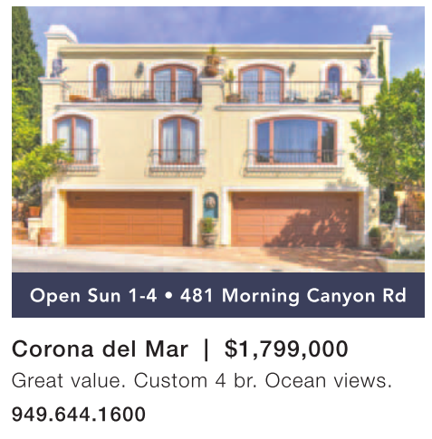 Corona del Mar | $1,799,000 Great value. Custom 4 br. Ocean views. 949.644.1600
