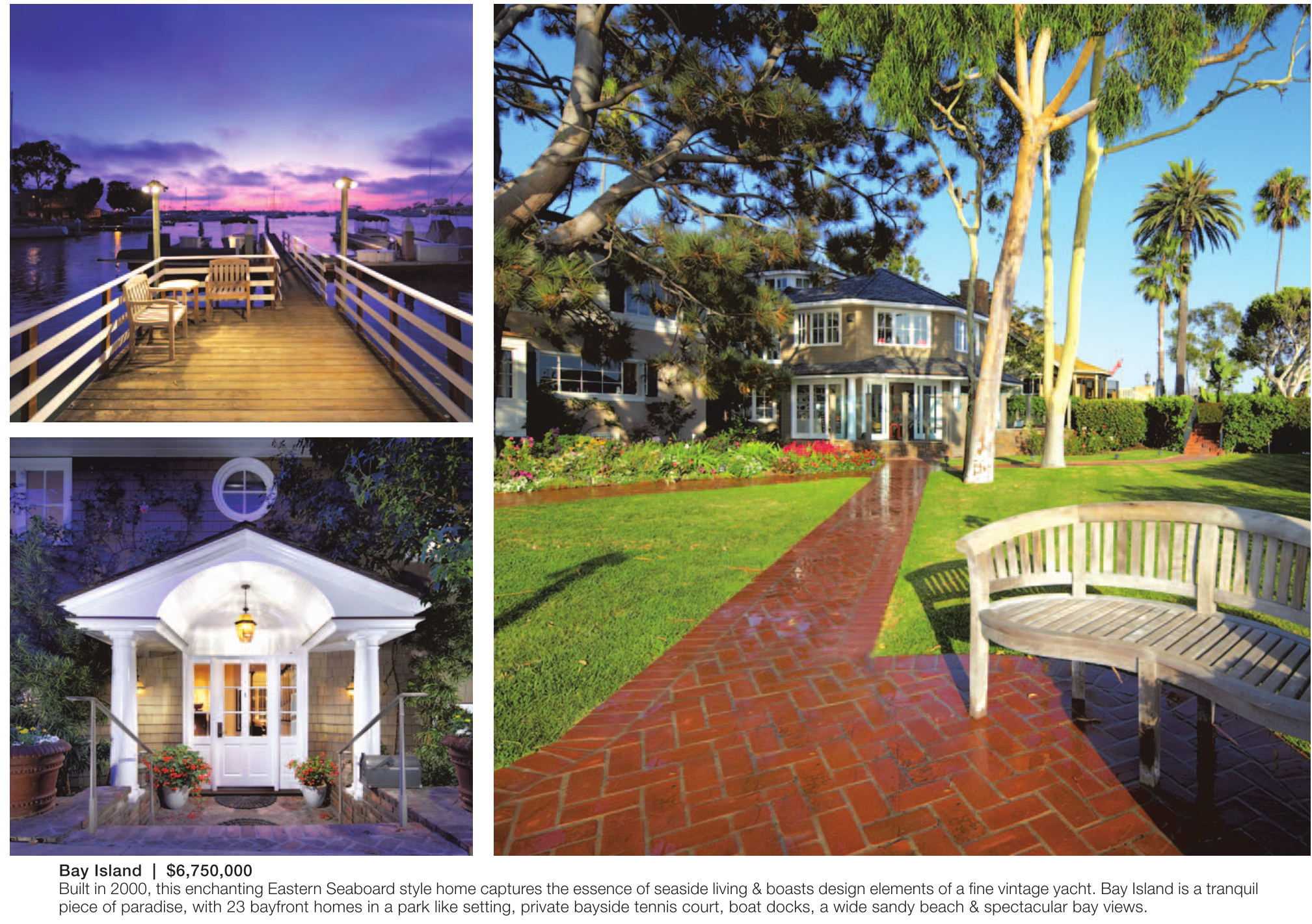 Bay Island | $6,750,000 Built in 2000, this enchanting Eastern Seaboard style home captures the essence of seaside living & boasts design elements of a fine vintage yacht. Bay Island is a tranquil piece of paradise, with 23 bayfront homes in a park like setting, private bayside tennis court, boat docks, a wide sandy beach & spectacular bay views.