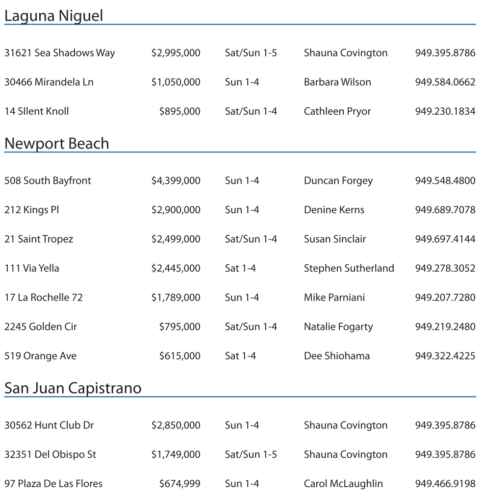 32351 Del Obispo St $1,749,000 Sat/Sun 1-5 Shauna Covington 949.395.8786