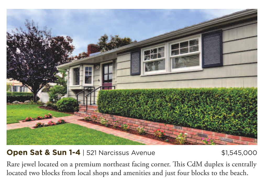 Open Sat & Sun 1-4 | 521 Narcissus Avenue $1,545,000