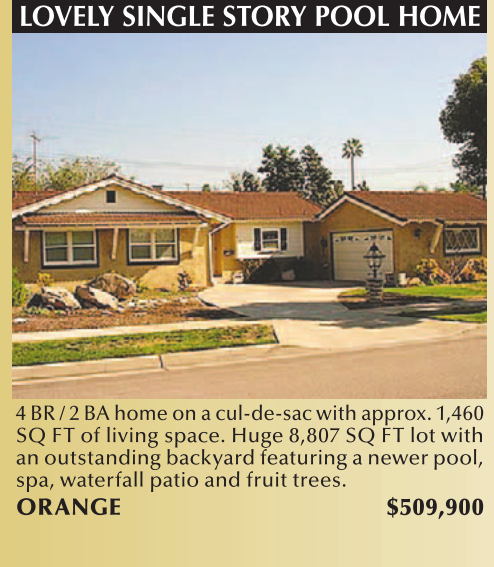 4 BR / 2 BA home on a cul-de-sac with approx. 1,460 SQ FT of living space. Huge 8,807 SQ FT lot with an outstanding backyard featuring a newer pool, spa, waterfall patio and fruit trees. ORANGE $509,900