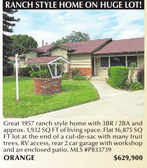 Great 1957 ranch style home with 3BR / 2BA and approx. 1,932 SQ FT of living space. Flat 16,875 SQ FT lot at the end of a cul-de-sac with many fruit trees, RV access, rear 2 car garage with workshop and an enclosed patio. MLS #P833739 ORANGE $629,900