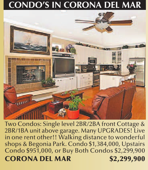 Two Condos: Single level 2BR/2BA front Cottage & 2BR/1BA unit above garage. Many UPGRADES! Live in one rent other!! Walking distance to wonderful shops & Begonia Park. Condo $1,384,000, Upstairs Condo $951,000, or Buy Both Condos $2,299,900 CORONA DEL MAR $2,299,900
