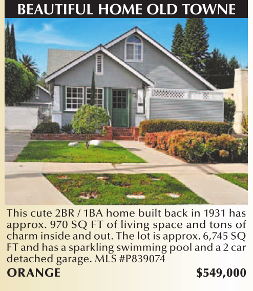 This cute 2BR / 1BA home built back in 1931 has approx. 970 SQ FT of living space and tons of charm inside and out. The lot is approx. 6,745 SQ FT and has a sparkling swimming pool and a 2 car detached garage. MLS #P839074 ORANGE $549,000