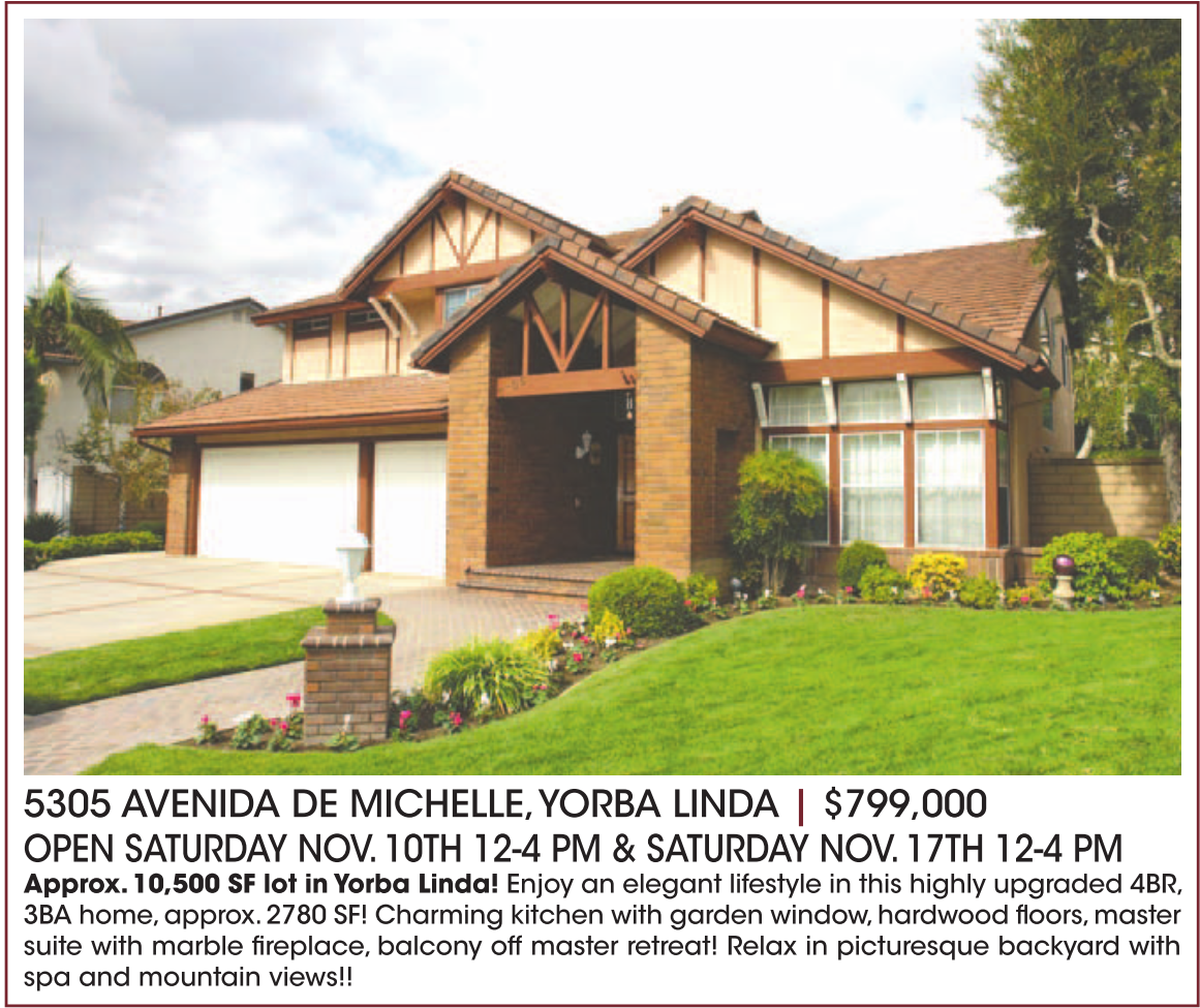 5305 AVENIDA DE MICHELLE, YORBA LINDA | $799,000 OPEN SATURDAY NOV. 10TH 12-4 PM & SATURDAY NOV. 17TH 12-4 PM