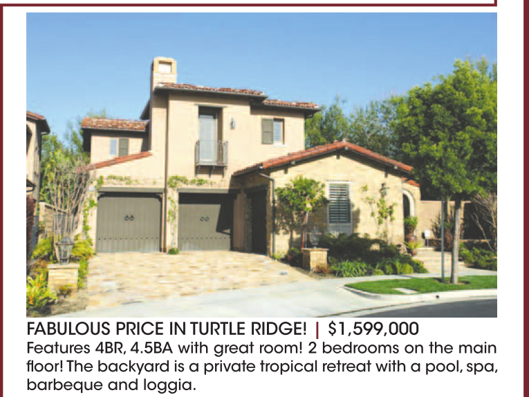FABULOUS PRICE IN TURTLE RIDGE! | $1,599,000 Features 4BR, 4.5BA with great room! 2 bedrooms on the main floor! The backyard is a private tropical retreat with a pool, spa, barbeque and loggia.