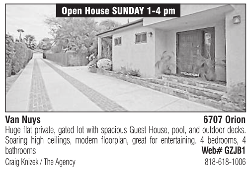 Van Nuys 6707 Orion Huge flat private, gated lot with spacious Guest House, pool, and outdoor decks. Soaring high ceilings, modern floorplan, great for entertaining. 4 bedrooms, 4 bathrooms Web# GZJB1