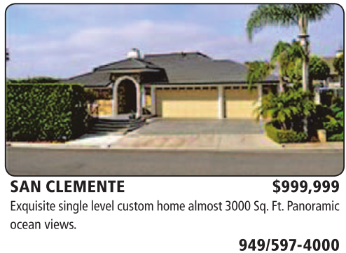 SAN CLEMENTE $999,999 Exquisite single level custom home almost 3000 Sq. Ft. Panoramic ocean views.