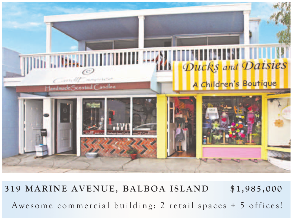 319 MARINE AVENUE, BALBOA ISLAND $1,985,000 Awesome commercial building: 2 2 retail spaces + + 5 5 offices!
