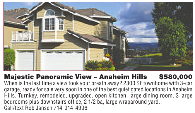 bedroomsplusdownstairsoffice, 21/2 ba, large wraparound yard. Call/text Rob Jansen 714-914-4996