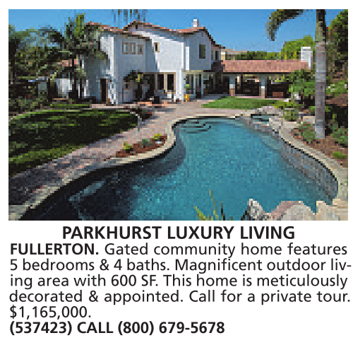 PARKHURST LUXURY LIVING FULLERTON. Gated community home features 5bedrooms &4baths. Magnificent outdoor living area with 600 SF. This home is meticulously decorated & appointed. Call for a private tour. $1,165,000. (537423) CALL (800) 679-5678