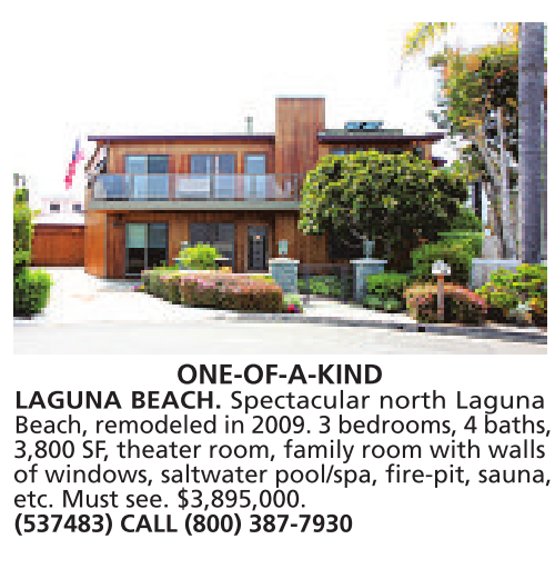 Beach, remodeled in 2009. 3bedrooms, 4baths, 3,800 SF, theater room, family room with walls of windows, saltwater pool/spa, fire-pit, sauna, etc. Must see. $3,895,000. (537483) CALL (800) 387-7930