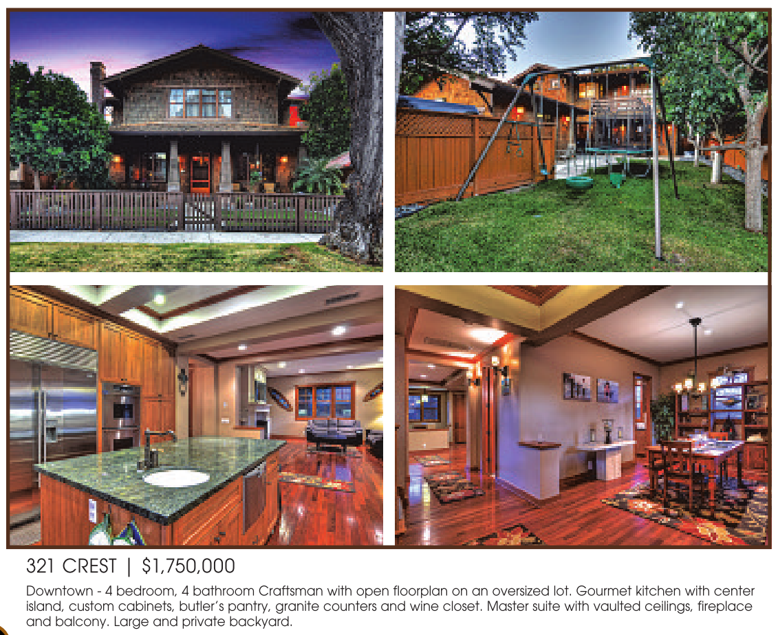downtown - 4 bedroom, 4 bathroom Craftsman with open floorplan on an oversized lot. Gourmet kitchen with center island, custom cabinets, butler’s pantry, granite counters and wine closet. master suite with vaulted ceilings, fireplace and balcony. large and private backyard.