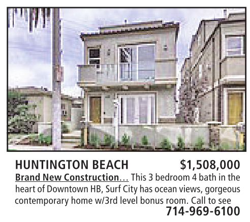 HUNTINGTON BEACH $1,508,000 BrandNew Construction…This 3bedroom 4bathinthe heartofDowntownHB, Surf City hasoceanviews,gorgeous contemporary homew/3rd level bonusroom. Call to see 714-969-6100