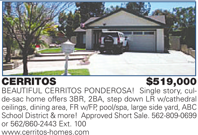 or 562/860-2443 Ext. 100 www.cerritos-homes.com