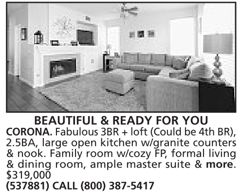 CORONA. Fabulous 3BR +loft (Could be 4th BR),