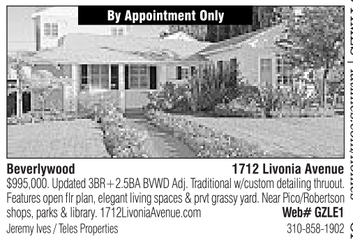 shops, parks &library.1712LivoniaAvenue.com Web# GZLE1 Jeremy Ives /Teles Properties 310-858-1902