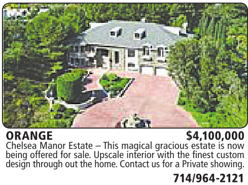 ORANGE $4,100,000 Chelsea Manor Estate –This magical gracious estate is now being offered for sale.Upscale interior with the finest custom design through out the home.Contact us for aPrivate showing.