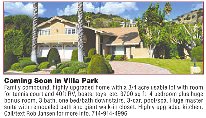 Call/text Rob Jansen formoreinfo. 714-914-4996