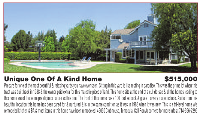 remodeledkitchen &BA&mostitems in this home have beenremodeled. 46050Clubhouse, Temecula.CallRon Accornerofor moreinfoat714-396-7295