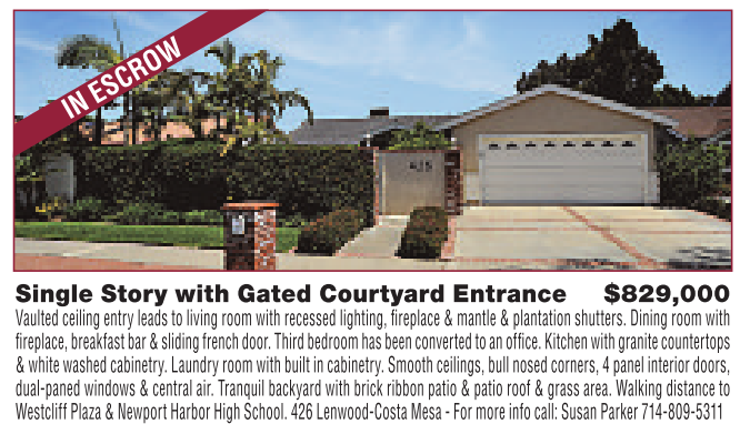 WestcliffPlaza &Newport Harbor High School.426 Lenwood-Costa Mesa-For moreinfo call: SusanParker714-809-5311