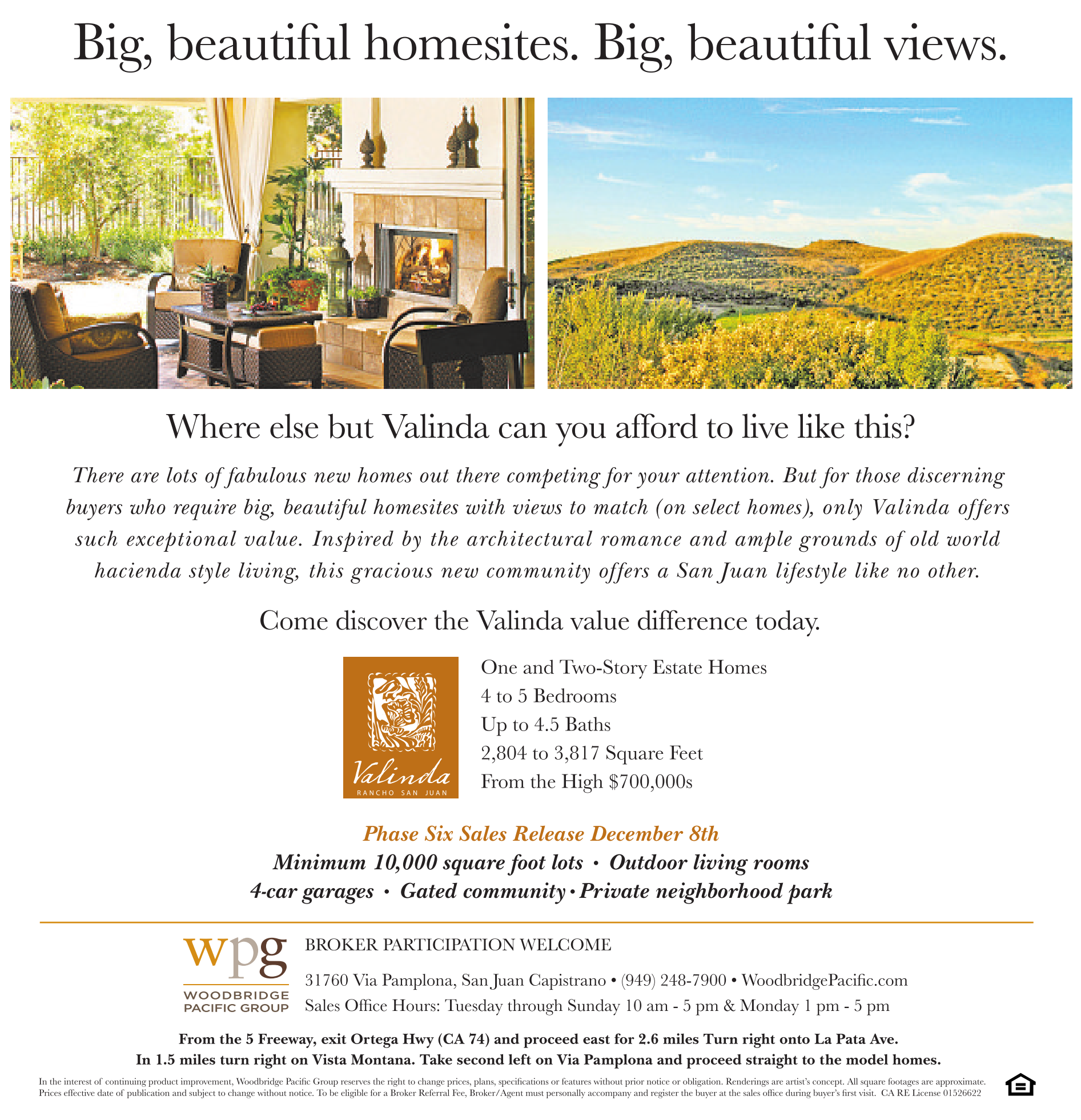 There are lots of fabulous new homes out there competing for your attention. But for those discerning buyers who require big, beautiful homesites with views to match (on select homes), only Valinda offers such exceptional value. Inspired by the architectural romance and ample grounds of old world hacienda style living, this gracious new community offers a San Juan lifestyle like no other.