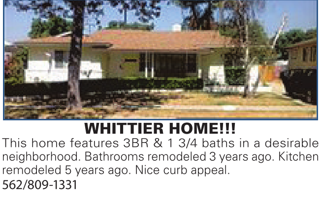 remodeled 5 years ago. Nice curb appeal. 562/809-1331