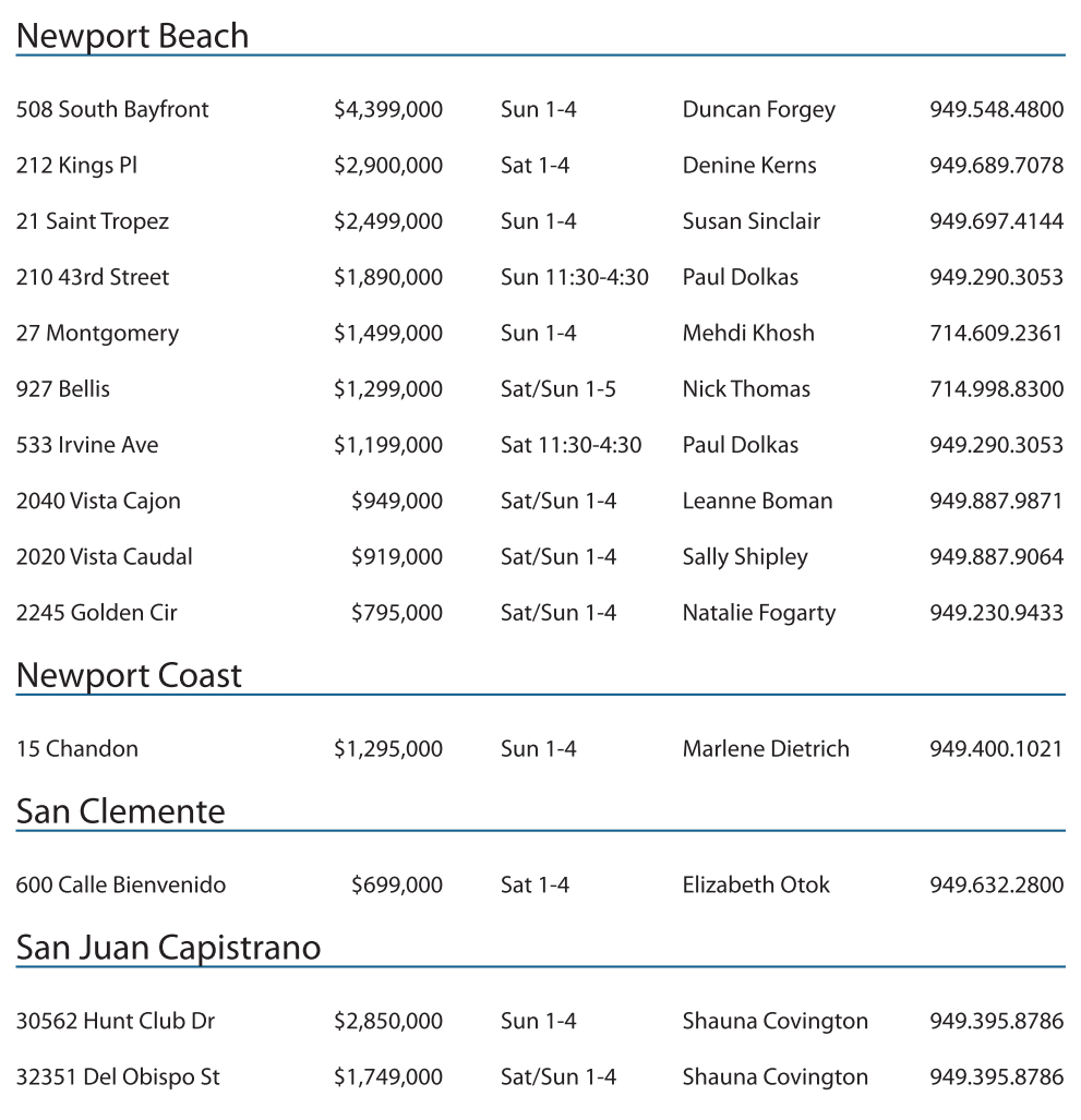 21 Saint Tropez $2,499,000 Sun 1-4 Susan Sinclair 949.697.4144