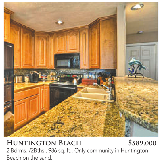 2 Bdrms. /2Bths., 986 sq. ft.. Only community in Huntington Beach on the sand.