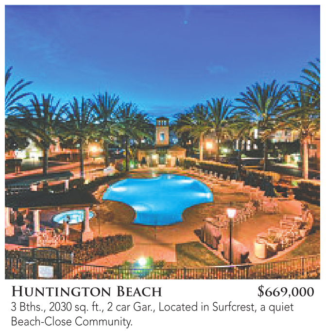 3 Bths., 2030 sq. ft., 2 car Gar., Located in Surfcrest, a quiet Beach-Close Community.