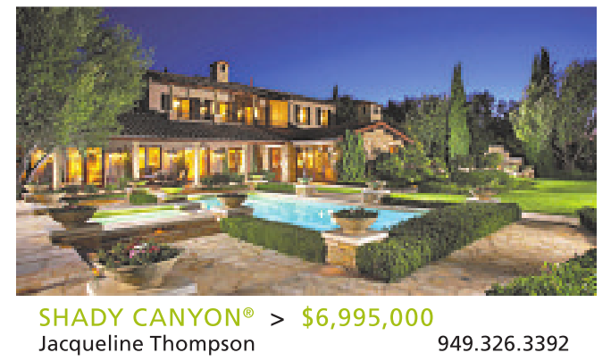 SHADY CANYON ® > $6,995,000 Jacqueline Thompson 949.326.3392
