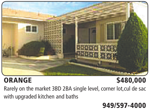 ORANGE $480,000 Rarely on the market 3BD 2BAsingle level, corner lot,cul de sac with upgraded kitchen and baths 949/597-4000