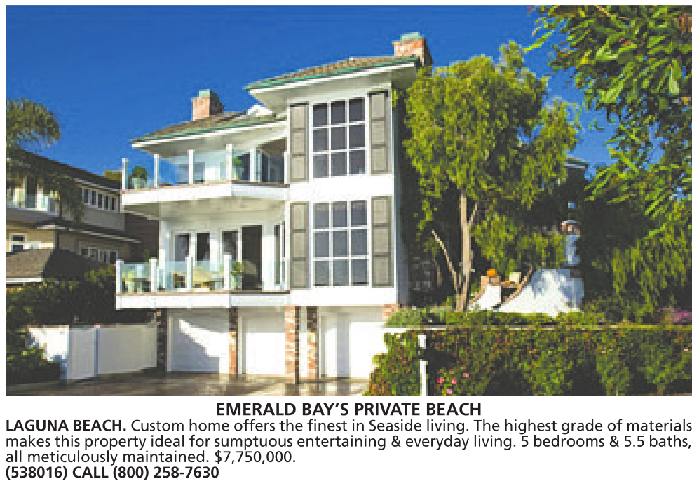 EMERALD BAY’S PRIVATE BEACH LAGUNA BEACH. Custom home offers thefinest in Seaside living. The highest grade of materials