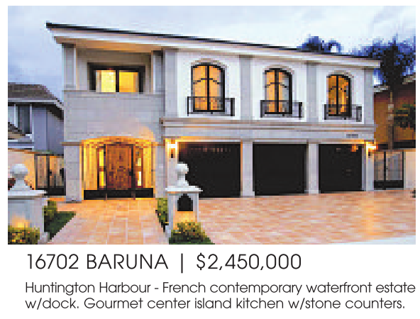 Huntington Harbour -French contemporary waterfront estate w/dock. Gourmet center island kitchen w/stone counters.