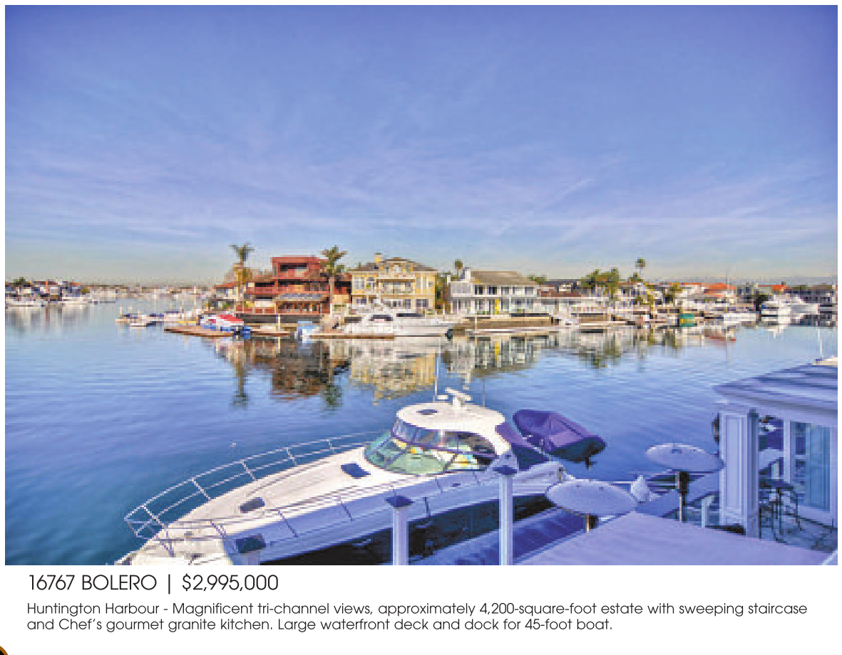 Huntington Harbour - Magnificent tri-channel views, approximately 4,200-square-foot estate with sweeping staircase and chef’s gourmet granite kitchen. large waterfront deck and dock for 45-foot boat.
