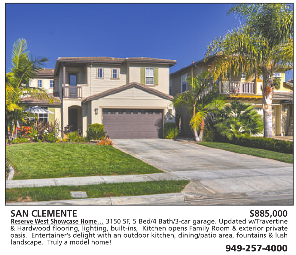 SAN CLEMENTE $885,000 Reserve West Showcase Home… 3150 SF, 5 Bed/4 Bath/3-car garage. Updated w/Travertine