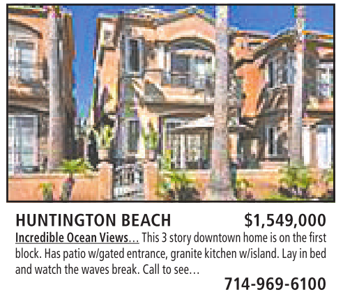 HUNTINGTON BEACH $1,549,000 IncredibleOcean Views…This 3story downtown homeisonthe first block.Has patiow/gated entrance,granite kitchen w/island.Lay in bed andwatchthe wavesbreak.Calltosee… 714-969-6100