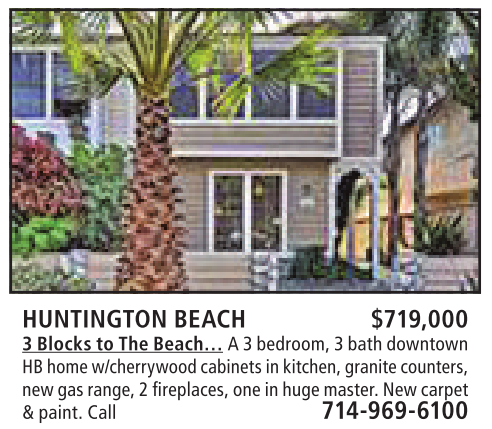 3BlockstoThe Beach… A3bedroom,3bathdowntown HB homew/cherrywood cabinetsinkitchen,granite counters, new gasrange,2fireplaces,one in huge master. Newcarpet &paint. Call 714-969-6100