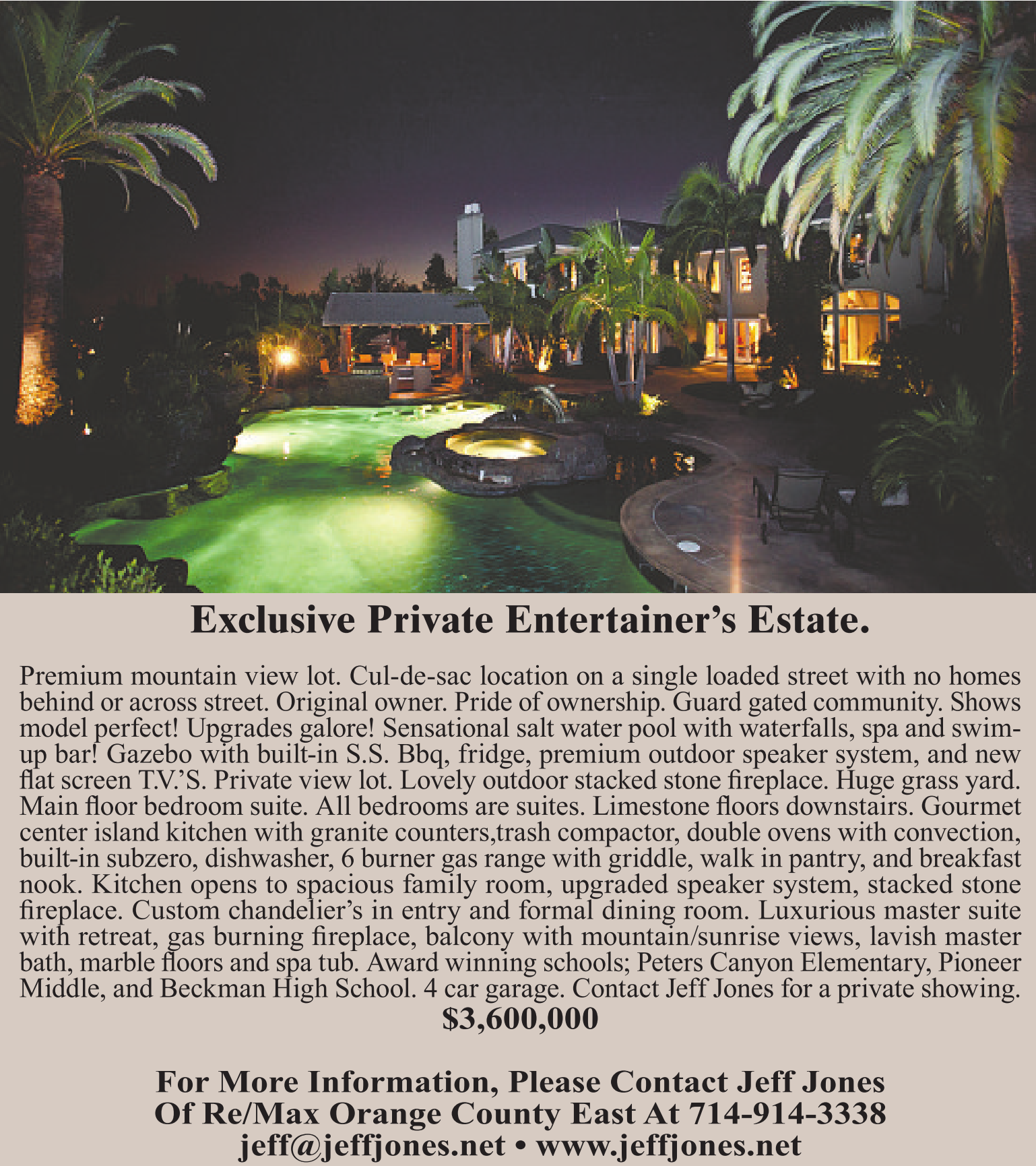 For More Information, Please Contact Jeff Jones Of Re/Max Orange County East At 714-914-3338 jeff@jeffjones.net • www.jeffjones.net